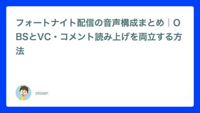 フォートナイト配信の音声構成まとめ|OBSとVC・コメント読み上げを両立する方法