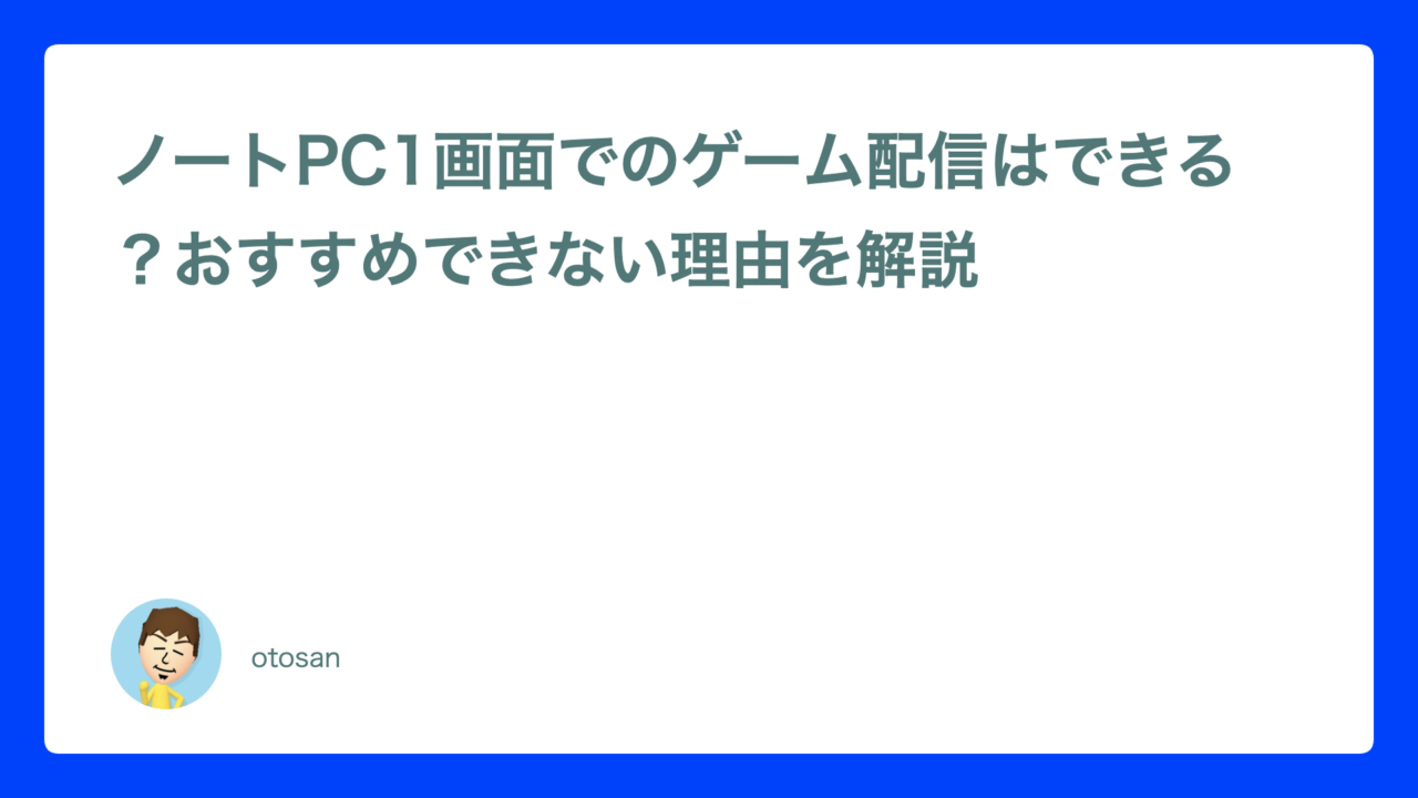 ノートPC1台だけで配信できないかと考える人は多いと思います。